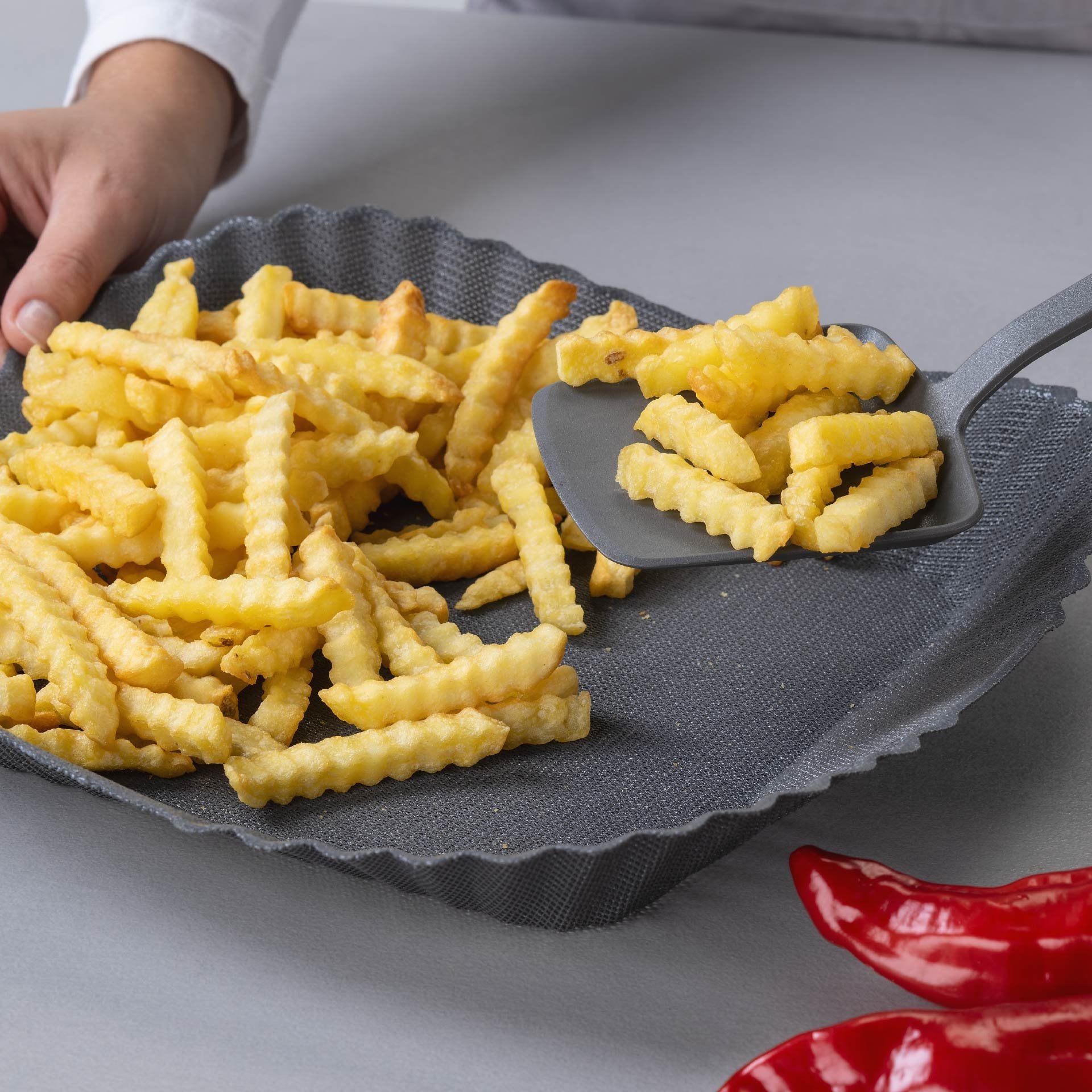 - Perforált kialakítása ideális légáramlást és ropogós eredményt biztosít – Méretek: 21 x 21 x 4,5 cm