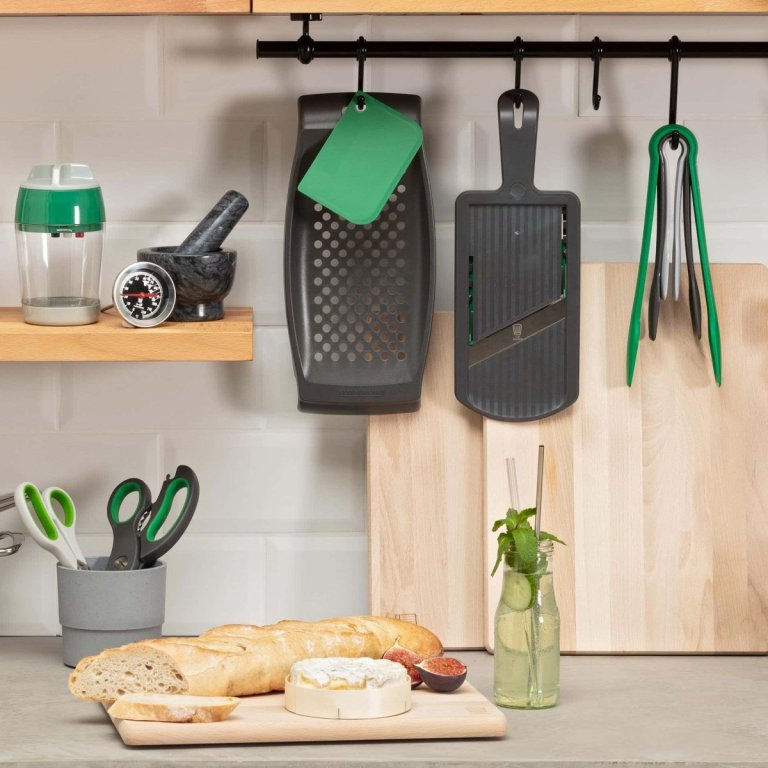 - Kiváló minőségű műanyagból készült galuskaszaggató stílusos, modern dizájnnal időtlen szürke/zöld színben
