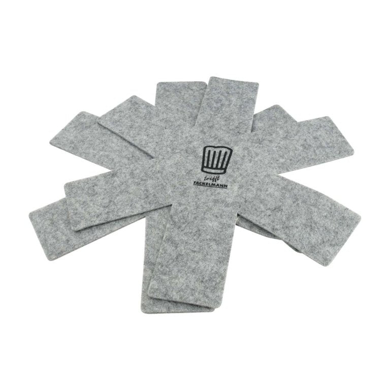 Tartós és robusztus szintetikus filcből készült serpenyővédő sima szürke színben