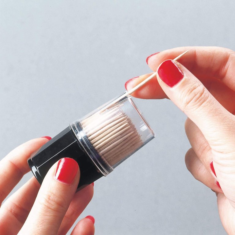 Az egyes fogpiszkálók higiénikus kiemeléséhez a praktikus adagolódoboznak köszönhetően
