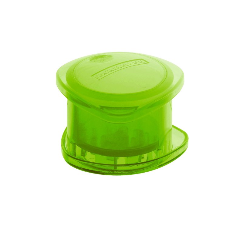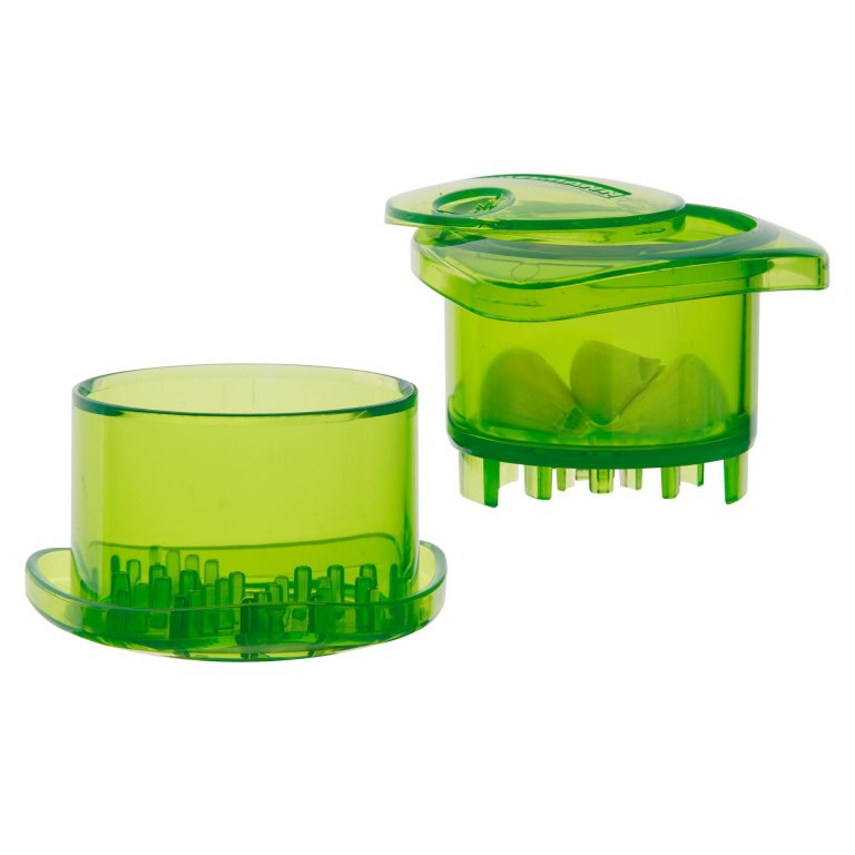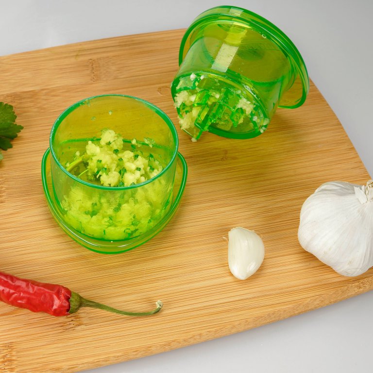 Fokhagyma aprító zöld színben. Kiválóan használható fokhagyma, chili, mogyoróhagyma vagy olajbogyó darabolására. Praktikus tárolórekesszel és fedéllel. Használat után a mosogatógépben könnyen tisztítható.