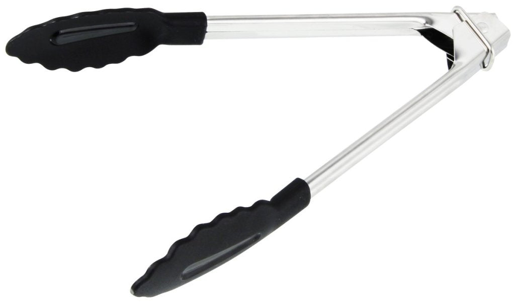 Rozsdamentes acél tálalófogó funkcionális műanyag résszel - hossza 18 cm, nyitási szélessége 10 cm