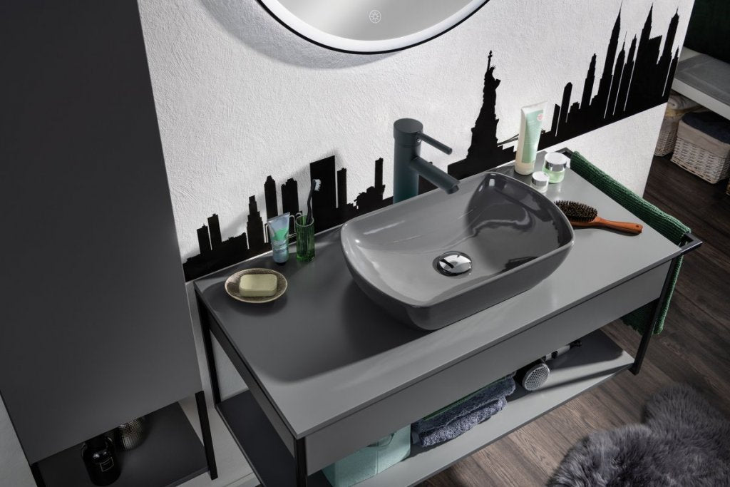 A Fackelmann kerámia mosdóját meleg közép szürke szín jellemzi. A tervezők olyan munkalapon fekvő mosdót készítettek, amely alakjában és színében megfelel a modern korszerűségnek. A Fackelmann szürke kerámia mosdója 50 cm szélességgel vonzza a tekintetet a fürdőszobában. Anyaga és a hozzá kapcsolódó tulajdonságok miatt a kórokozóknak és baktériumoknak esélyük sincs, így magas szintű higiéniát kínál.