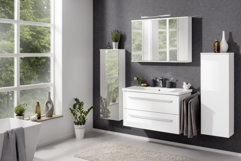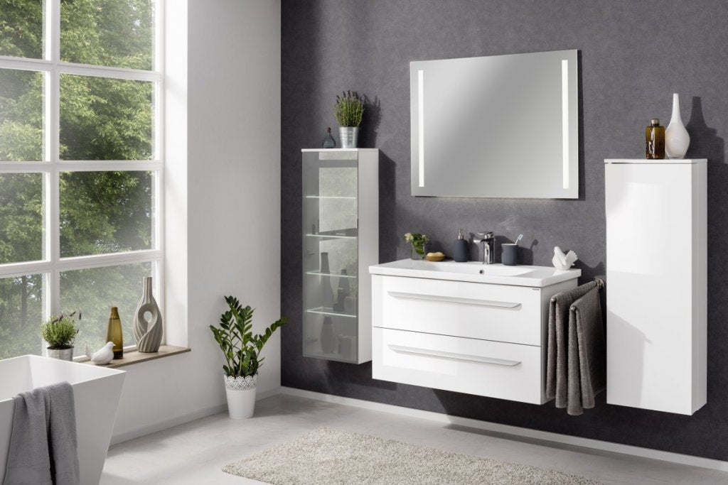 A Fackelmann fehér midi szekrénye mélységben csökkentett (mindössze 26 cm), és színének köszönhetően ragyogást kölcsönöz a fürdőszobának. A fürdőszobabútor különlegessége az ajtóban rejlik: A fürdőszobai szekrény alapszekrényként lett kialakítva, bővített tárolóhellyel. Az ajtóban található rekeszek lehetővé teszik a flakonok, tubusok és és egyéb pipere eszközök biztonságos tárolását. A jobb oldali ajtópánttal ellátott ajtó fogantyú nélkül könnyen nyitható.