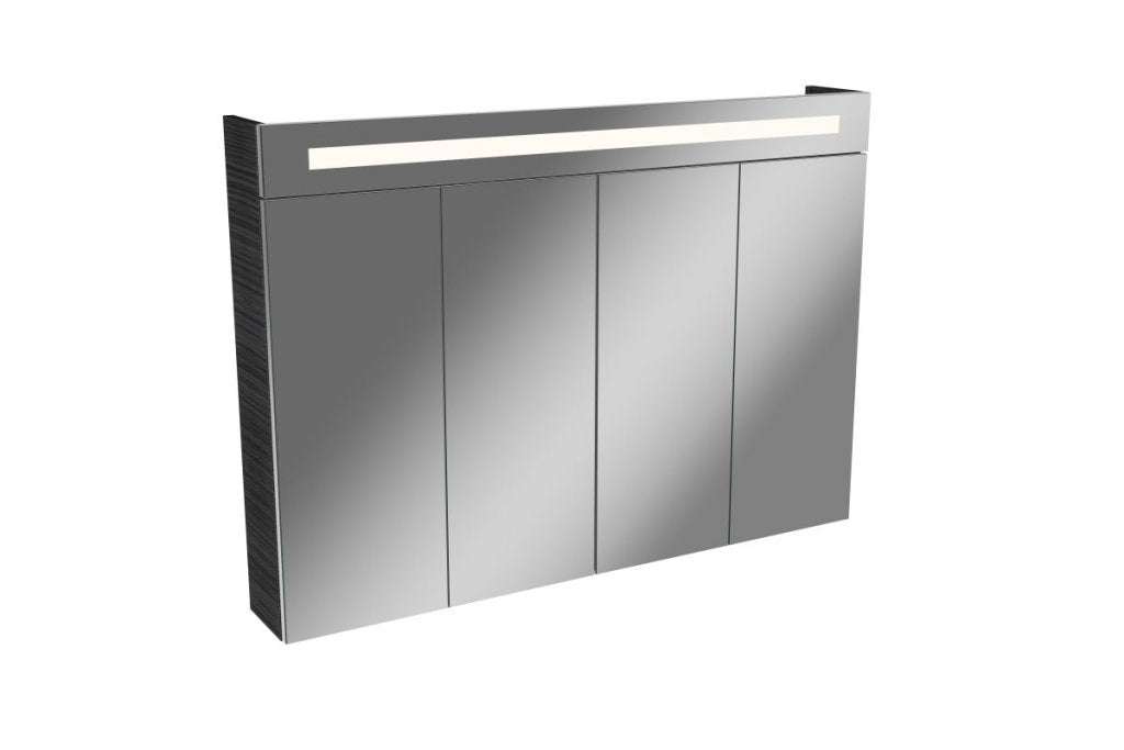 Ez a modern, négy tükrös ajtóval ellátott, LED tükrösszekrény innovatív összecsukható ajtó technológiával van felszerelve. Az így kapott 3D-effektus lehetővé teszi a több írányú megtekintést továbbá ez a funkció teljes hozzáférést biztosít a szekrény tartalmához. Az összecsukható ajtó technológia másik bónusza a vele járó helytakarékos ajtónyitás. Az ajtók csillapító pántokkal vannak ellátva. Ezek lehetővé teszik a gyengéd nyitást és zárást.