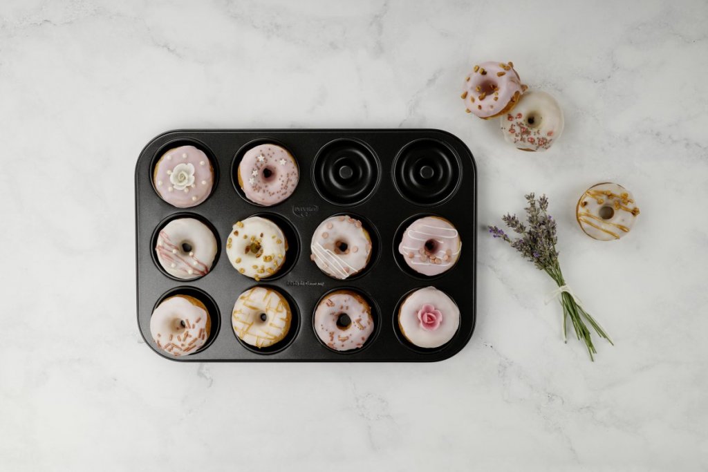 Töltött fánk, cukormázas, amerikai fánk, esetleg valamilyen sós finomság? A DR OETKER Tradition Fánk és donuts sütőforma segítségével könnyedén elkészíthető bármilyen ízletes, kerek sütemény. A sütőforma kb. 26,5x38,5x4 cm méretű, PFOA mentes, magas minőségű Special tapadásmentes bevonattal rendelkezik. Használat előtt ajánlott vékonyan kivajazni, hogy könnyedén ki tudjuk venni a fánkokat a formákból. Az amerikai fánk sütőforma nem karcálló, az éles eszközök kerülendőek. Maximum 230 °C-ig előmelegített elektromos- és gázsütőbe egyaránt betehető. Tisztítása kézzel javasolt. - Mérete 26,5x38,5x4 cm - A fánk formák mérete kb. 7x2,2 cm - Special ILAG tapadásmentes bevonat - PFOA mentes - Sütés előtt vaj használata javasolt - Nem karcálló - 230 °C-ig hőálló - Elektromos- és gázsütőben egyaránt használható - Kézi tisztítás ajánlott - Német gyártó - 5 év garancia
