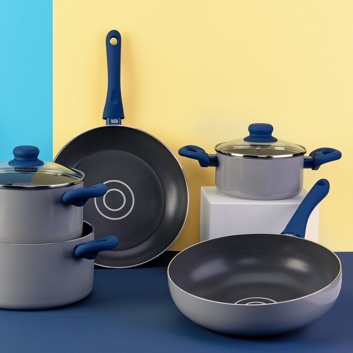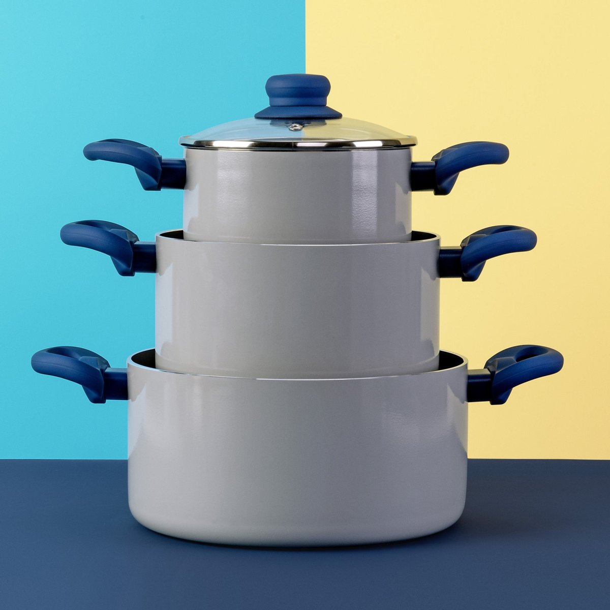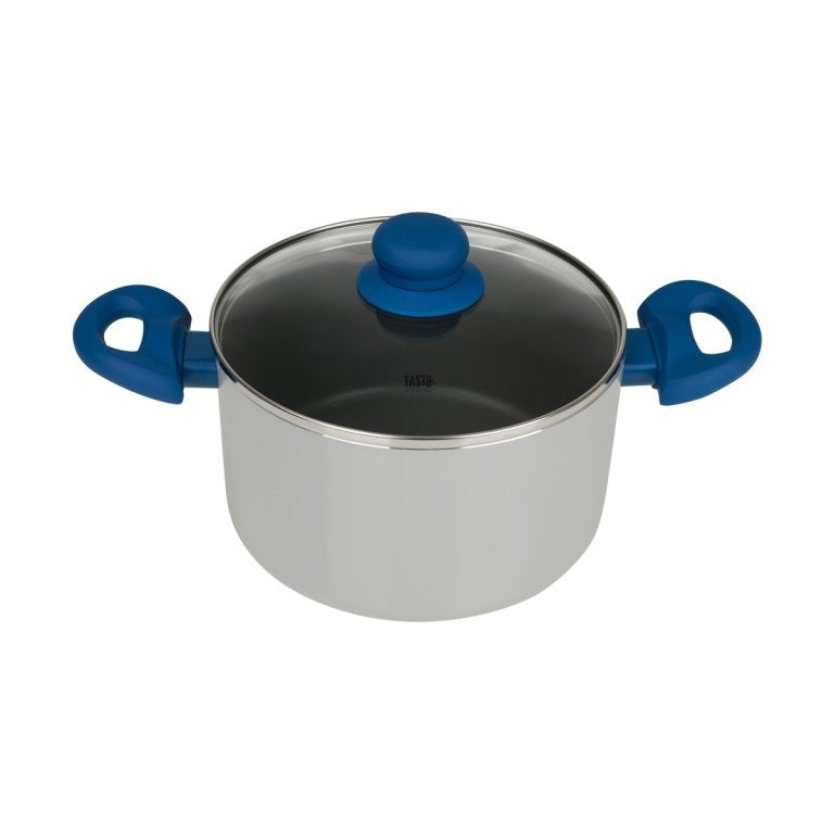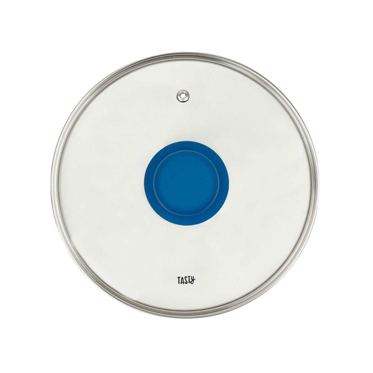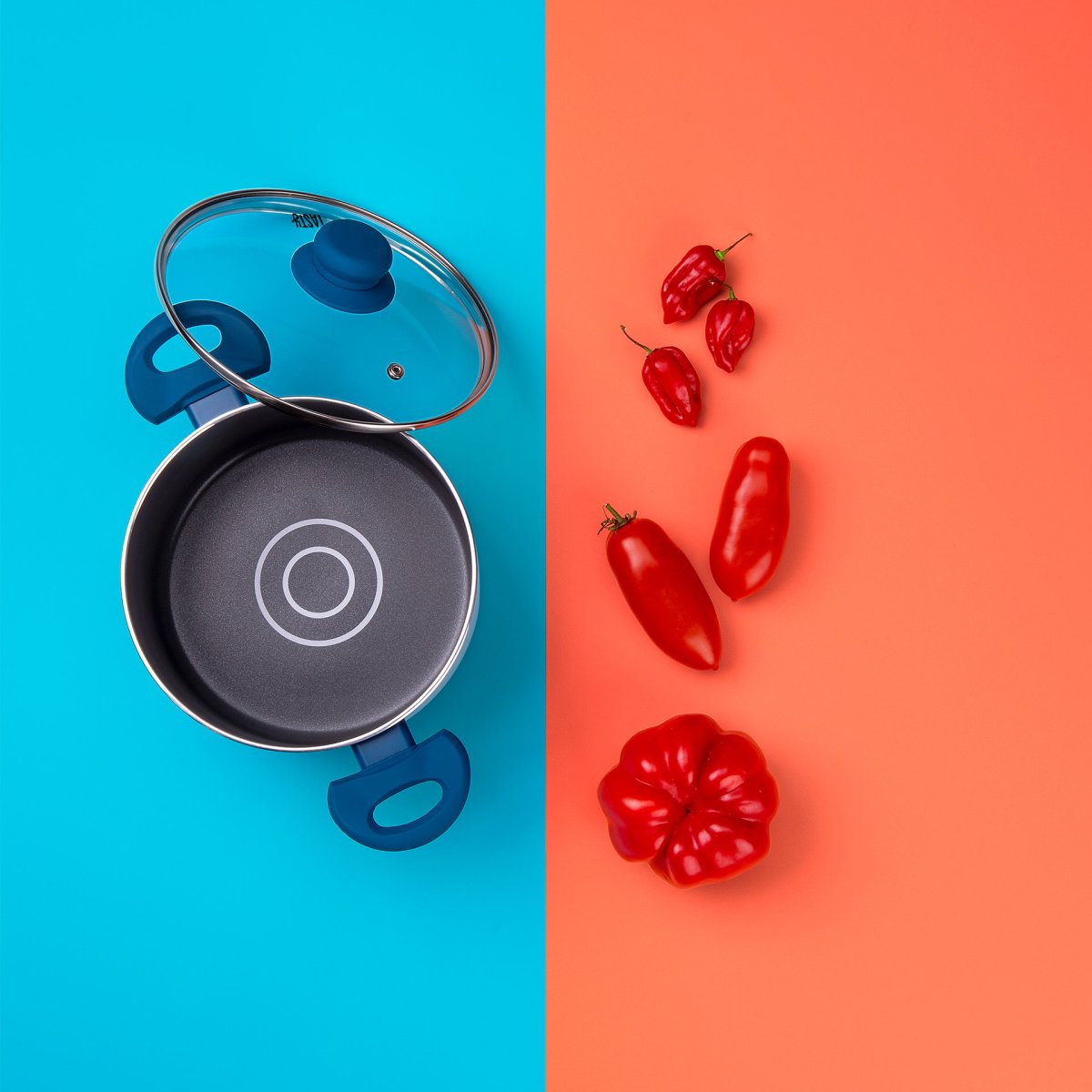 • Préselt alumínium főzőedény tapadásmentes bevonattal kék/szürke színben, üvegtetővel gombbal