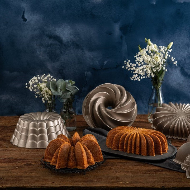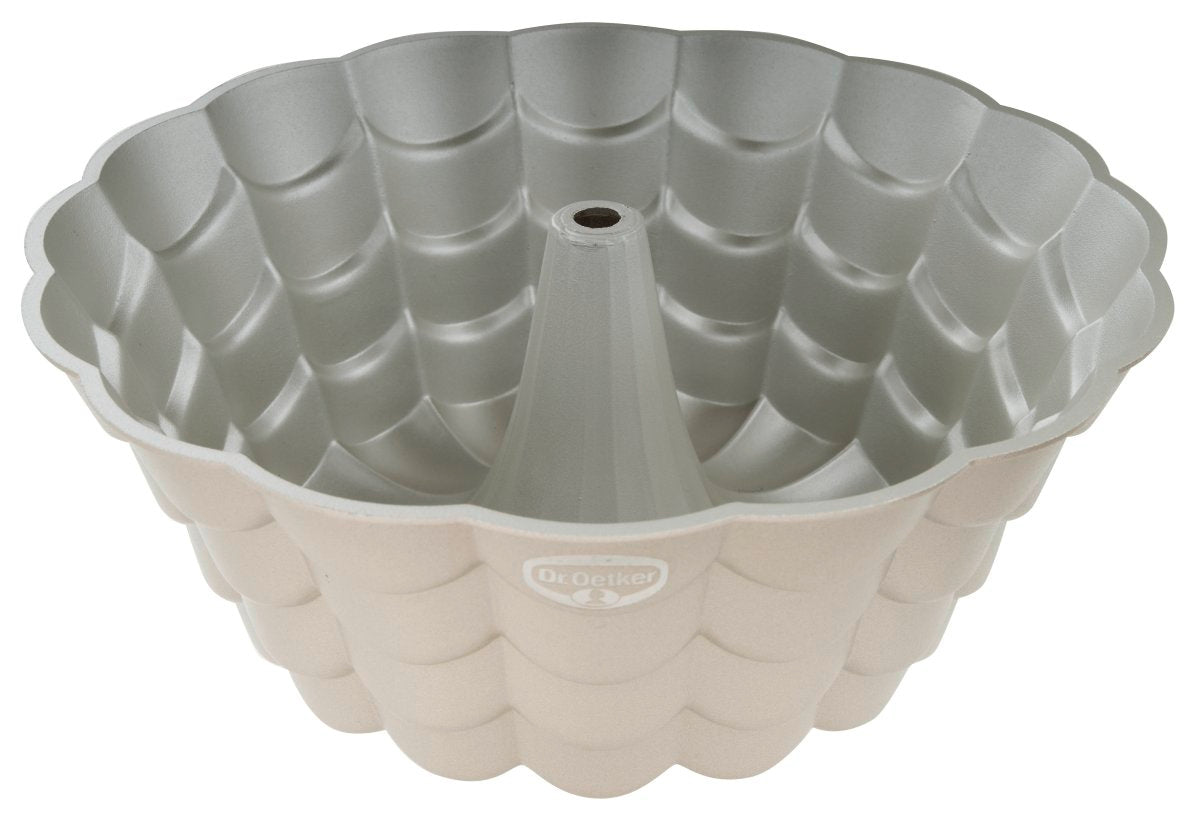 - Öntött alumínium kuglóf tortaforma krémszínű-metál tapadásmentes bevonattal – Ø 24 cm, magasság 19,5 cm, űrtartalom 2400 ml