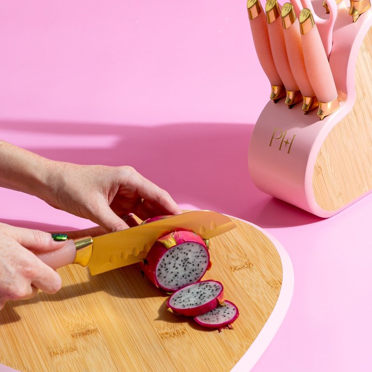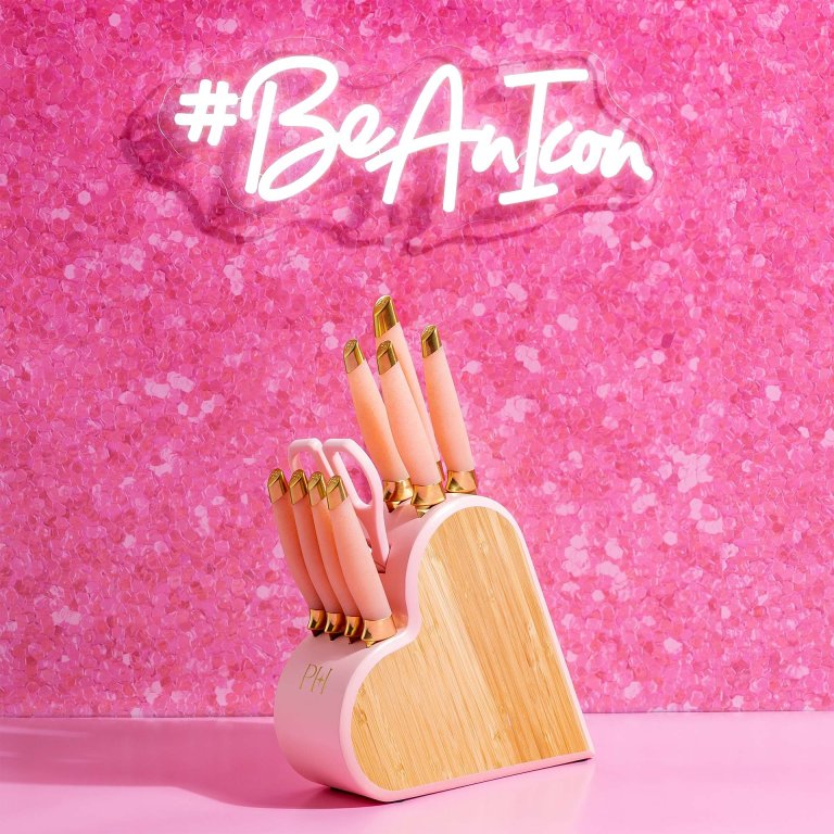 10 részes késblokk szett vonzó szív formával, Paris Hiltontól a könnyű és stílusos konyhai előkészítéshez