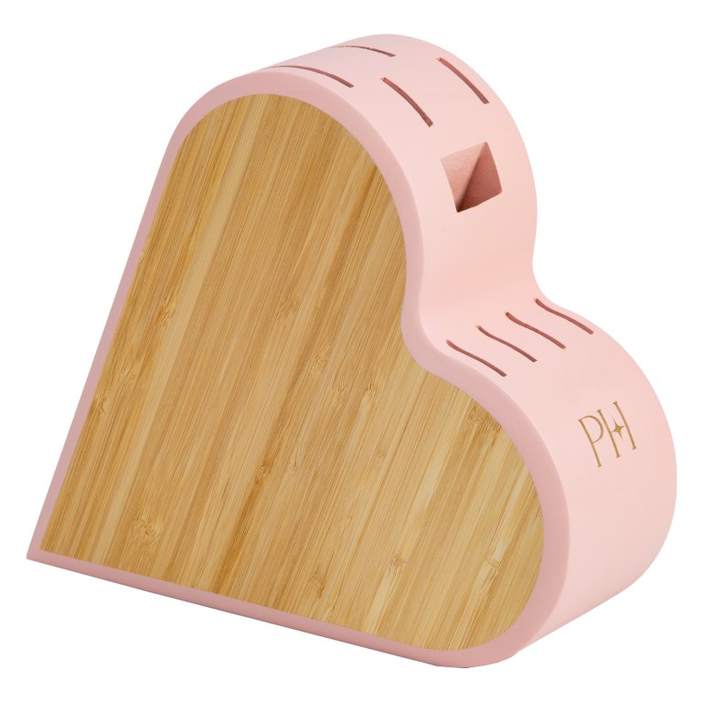 Bambuszból készült késblokk stílusos szív alakú rózsaszín díszítéssel - méretei: 24 x 20 x 7,5 cm