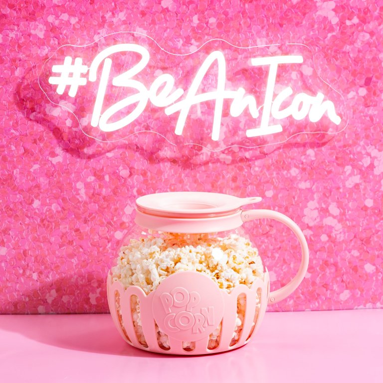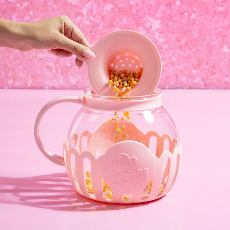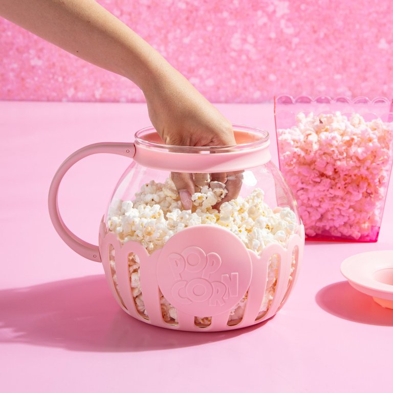Stílusos pattogatott kukorica készítő a Paris Hiltontól rózsaszín színben a pattogatott kukorica egyszerű elkészítéséhez a mikrohullámú sütőben