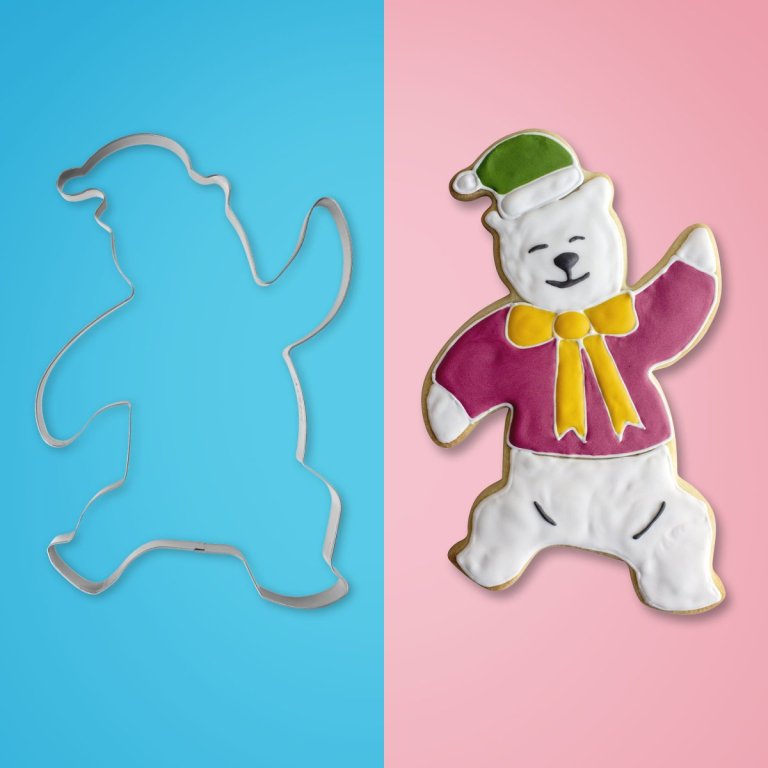 XXL mérető süteménykiszúró „Boldog, táncoló jegesmedve” a finom karácsonyi sütihez