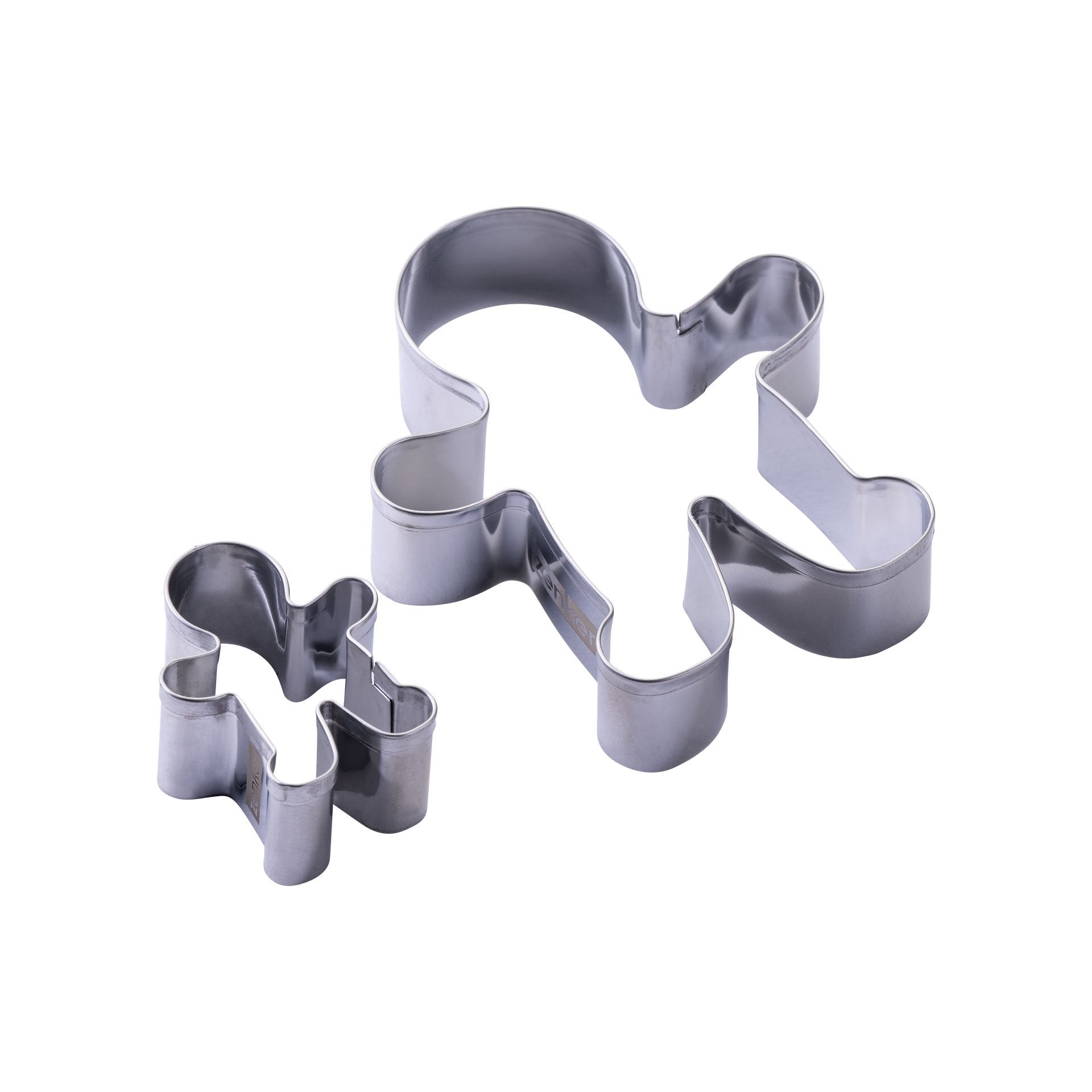 Két különböző méretű mézeskalács ember alakú forma, kiváló minőségű, rozsdamentes acélból