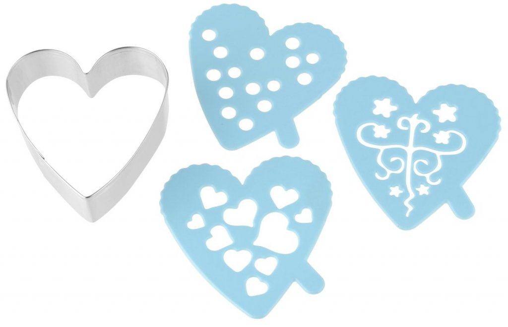 4 részes szett: 1 süteménykiszúró 3 db műanyag disíztősablon