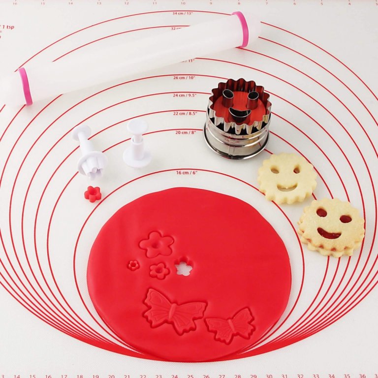 Vonalzóval a tészta vagy fondant kinyújtásához és méretének megméréséhez, beleértve a mérési és formázási táblázatokat