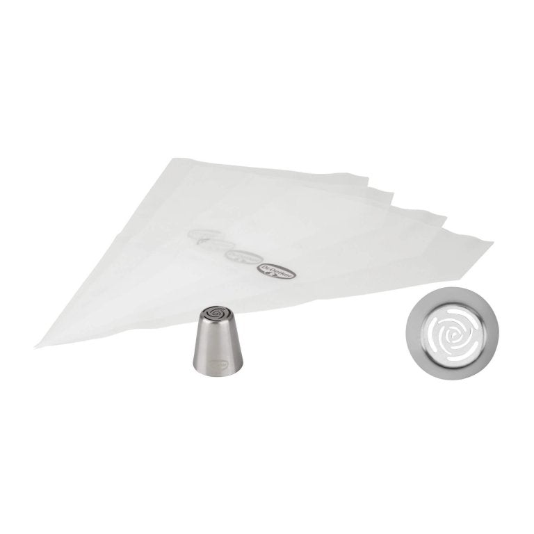 Különleges rozsdamentes acél rózsa virág mintás habnyomó fej , 4 eldobható habzsákkal