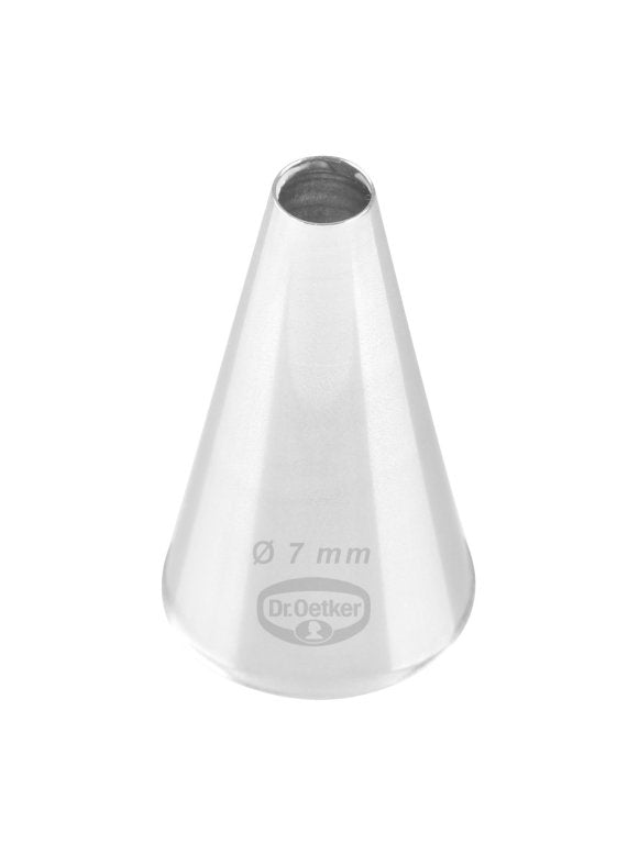 Perforált kifolyó kiváló minőségű rozsdamentes acélból ezüst színben - hegy Ø 7 mm, mérete kb Ø 2,5 x 4,5 cm