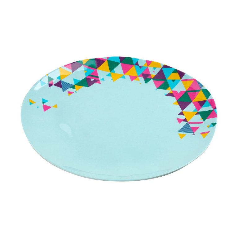 Masszív melaminból készült tányér világoskék színben modern színes mintával