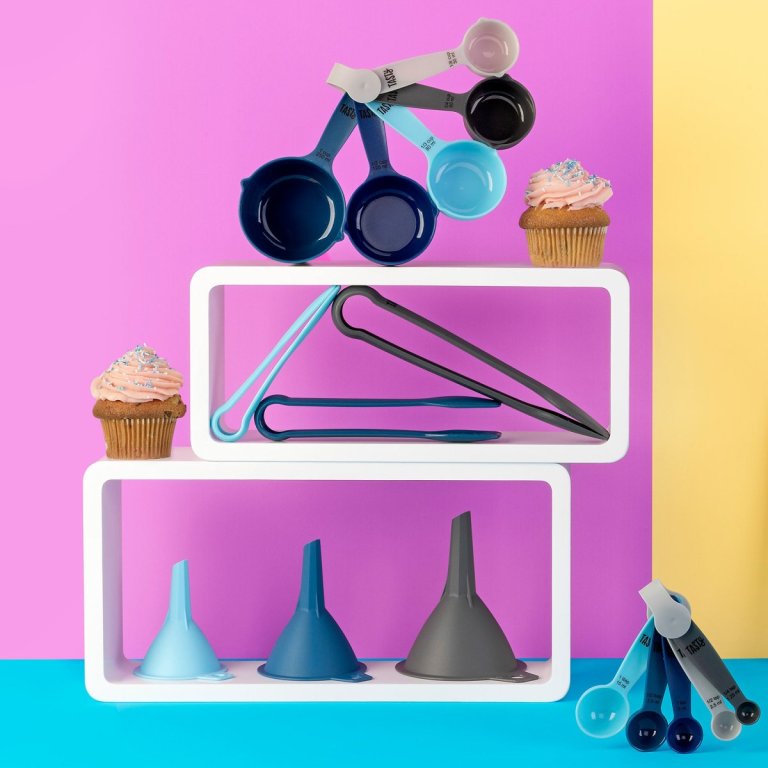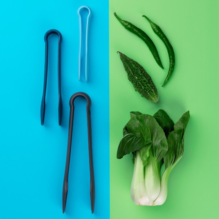 Erős műanyagból készült fogók a kék és szürke hideg árnyalataiban