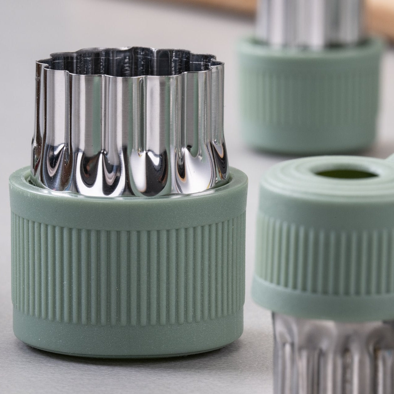 Sokoldalú 9 darabos zöldségvágó készlet a Fackelmann-tól, amely gyümölcsök, zöldségek, palacsinták és sütitészták kreatív kivágásához ideális. Rozsdamentes 18/0-ás acélból készült, garantálva a robusztus kezelést és precíz eredményeket. Csúszásmentes, világoszöld műanyag nyéllel – biztonságos és kényelmes a kisgyermekek kezébe is. Mosogatógépben mosható a gyors és könnyű tisztításhoz. Méretek: Ø 4,5 cm és 3 cm. Tökéletes választás a konyhában és a kreatív játékhoz egyaránt.