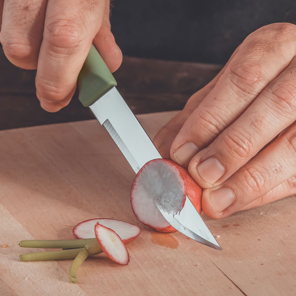 - Csúszásmentes nyél fenntartható anyagból a tökéletes fogásért vágás közben