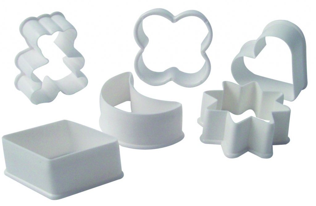 6 féle süteményszaggató: rombusz, félhold, csillag, virág, maci, szív