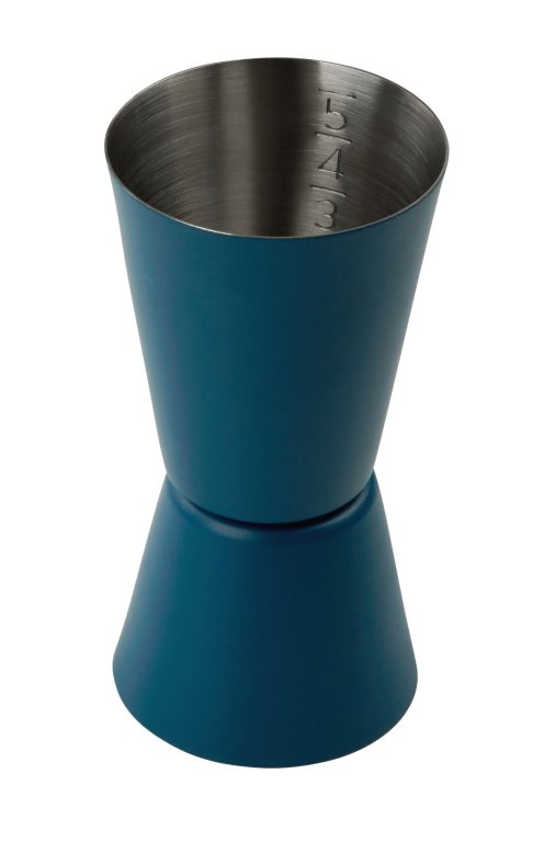Kiváló minőségű rozsdamentes acélból készült koktélmérce elegáns sötétkék/ezüst színben