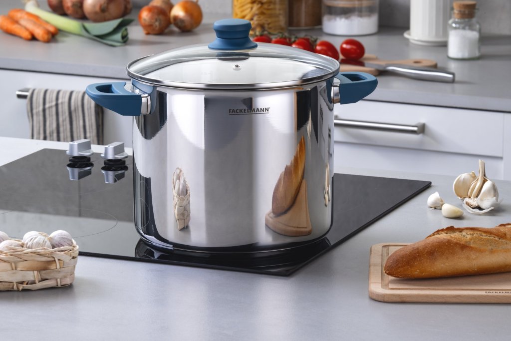 - Nagyméretű, üvegfedős Fackelmann főzőedényi a nagyobb adagok egyszerű elkészítéséhez
