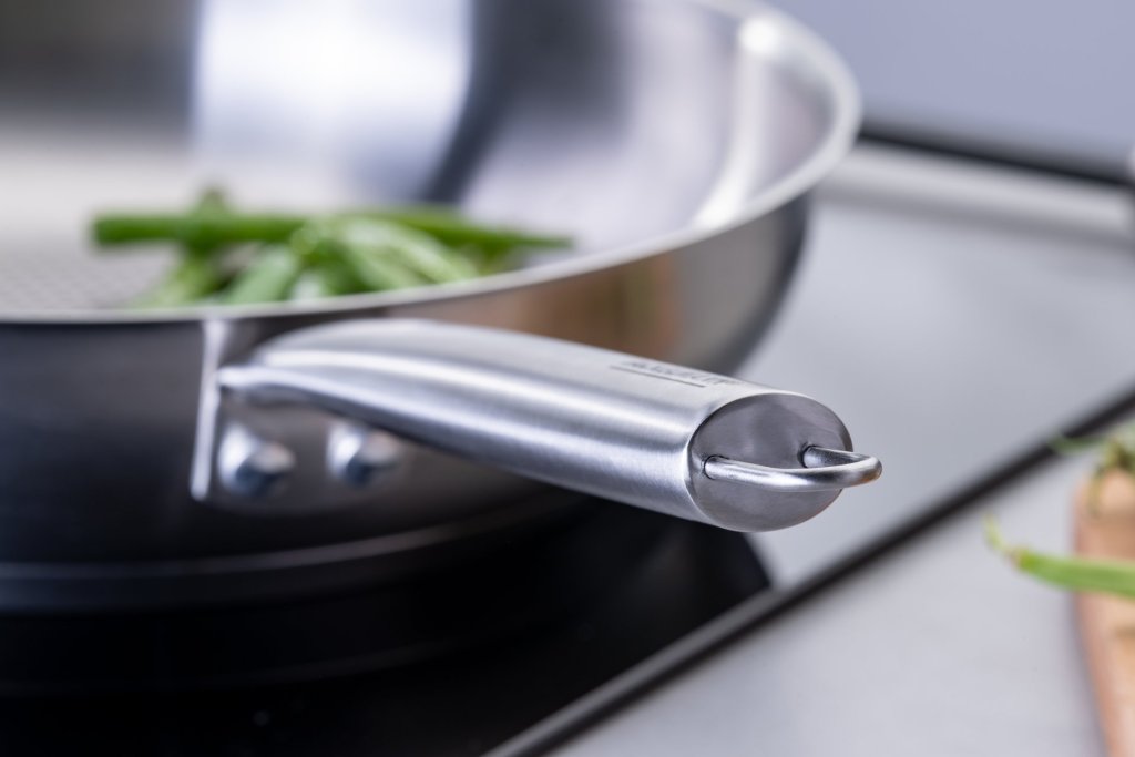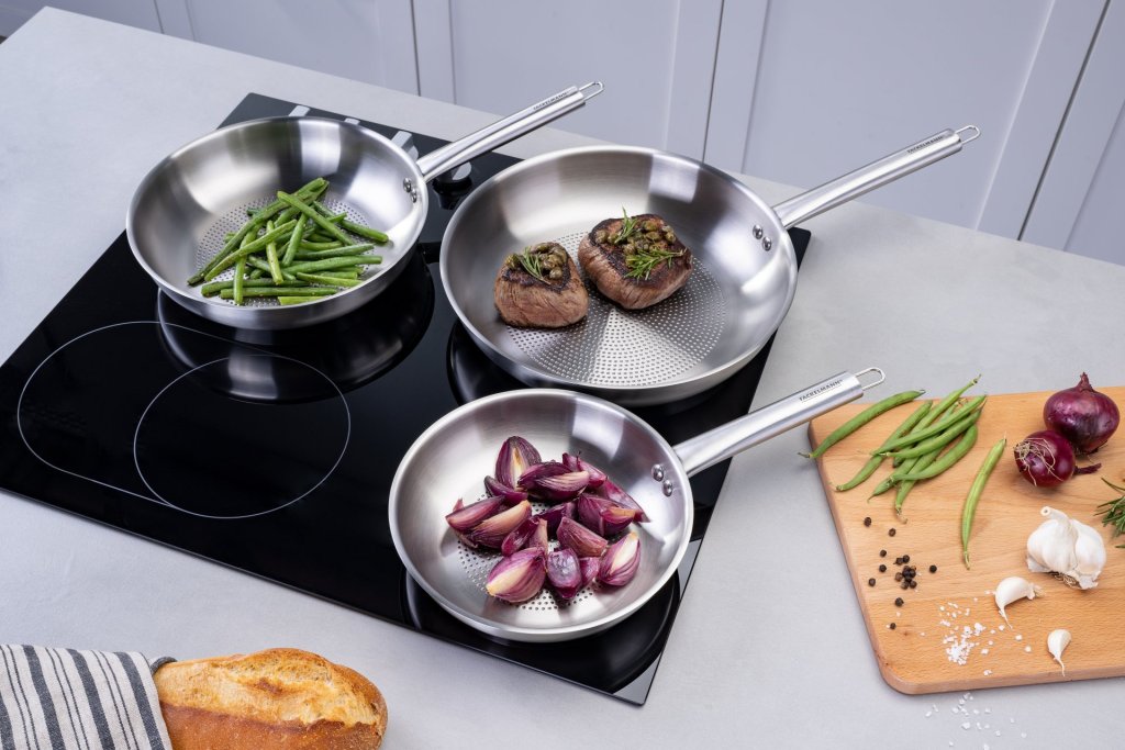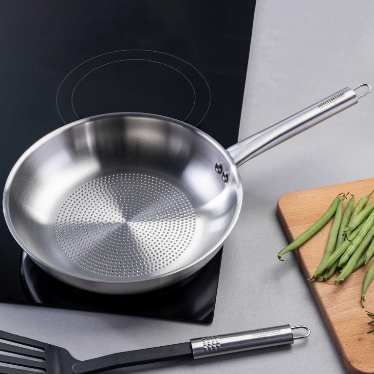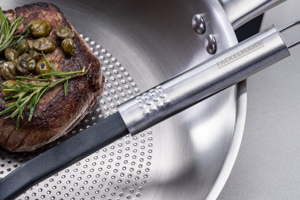 - Modern rozsdamentes acél serpenyő a Fackelmann-tól húsok és egyéb ételek magas hőmérsékleten történő pirításához