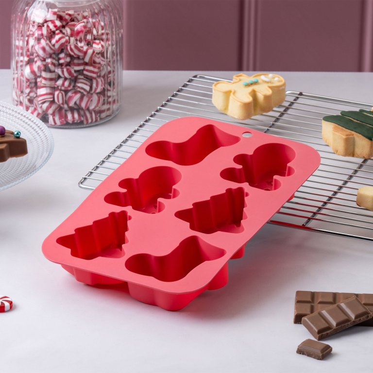 - 6 darabos mini süteményforma készlet, kiváló minőségű platina szilikonból, ünnepi karácsonyi piros színben, kreatív sütéshez
