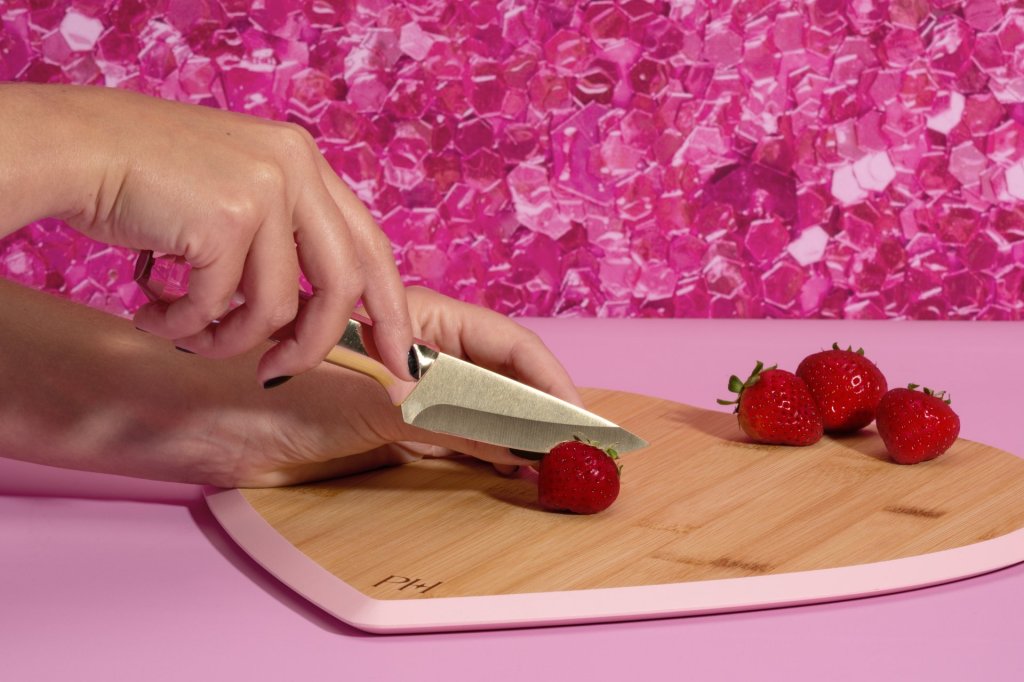 - Szív alakú késblokk bambuszból bájos rózsaszín díszítéssel – méretek: 23,5 x 20,5 x 7 cm