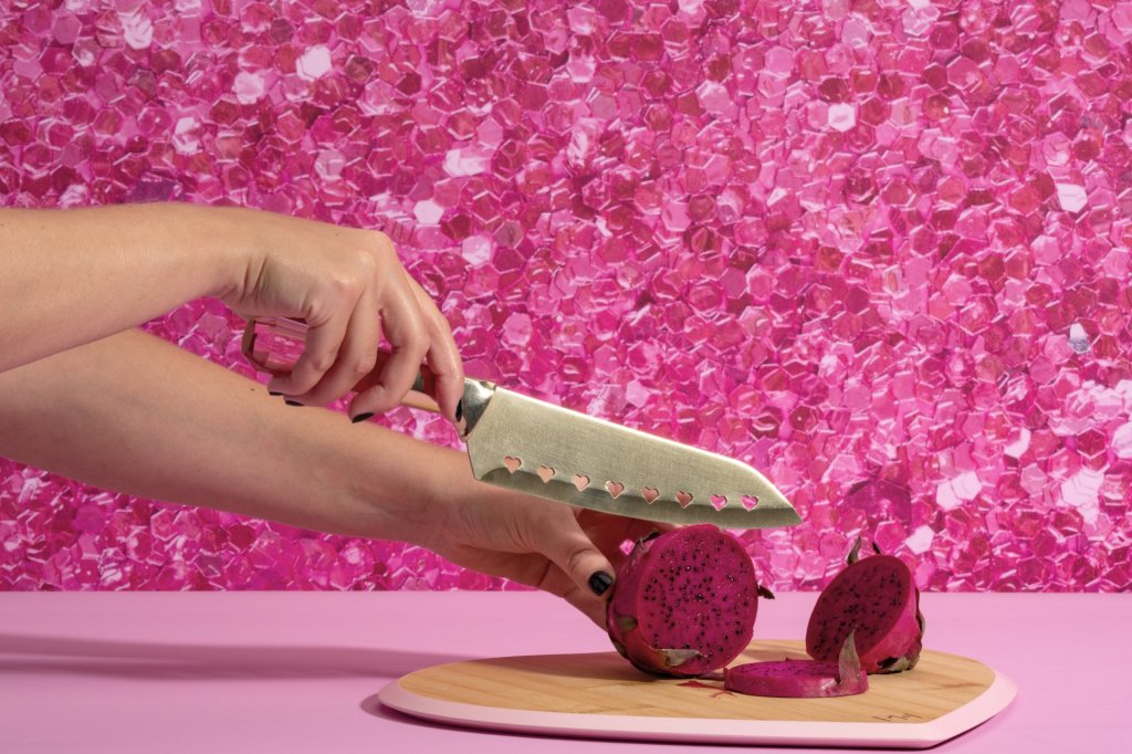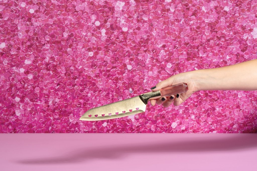 - Sokoldalú Santoku kés divatos rózsaszín és arany színben – könnyen tisztítható kézzel