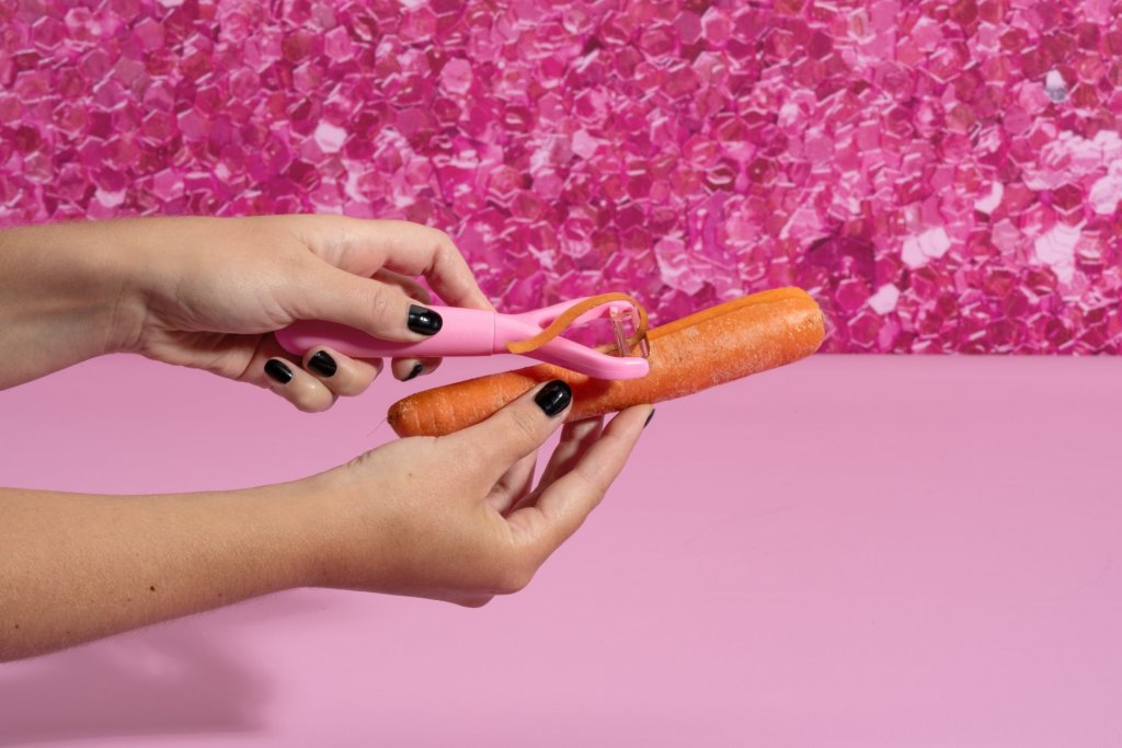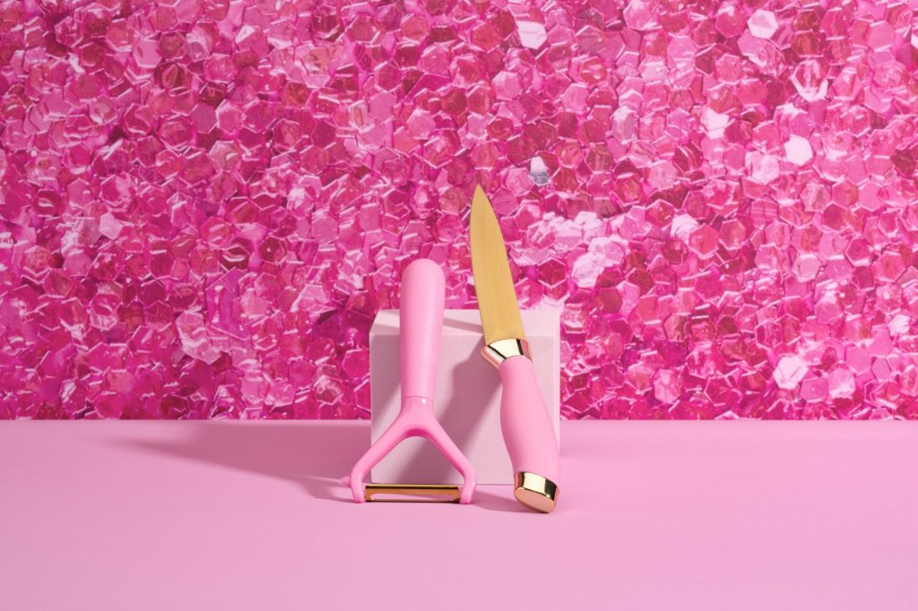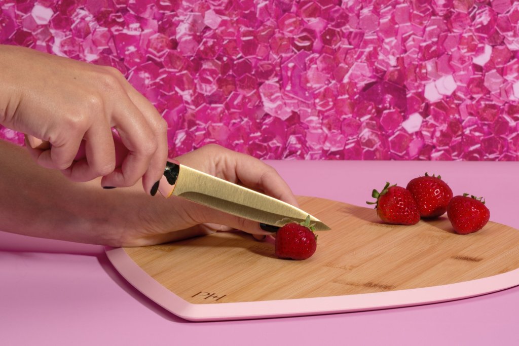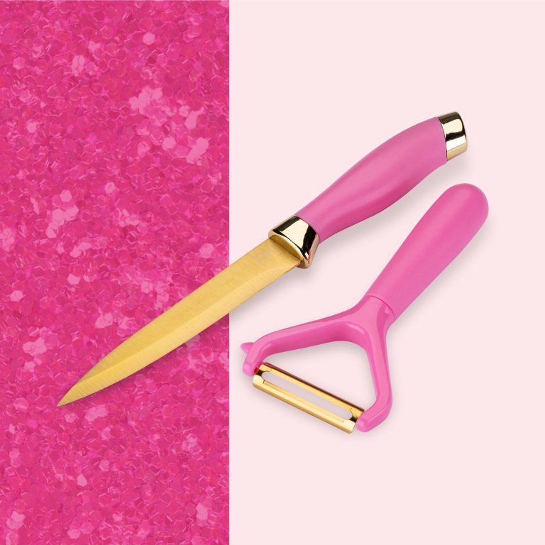 - Stílusos hámozó és kés Paris Hiltontól húshoz, apró gyümölcsökhöz vagy nagy zöldségekhez